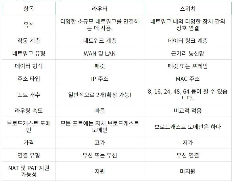 라우터와 스위치의 차이점
