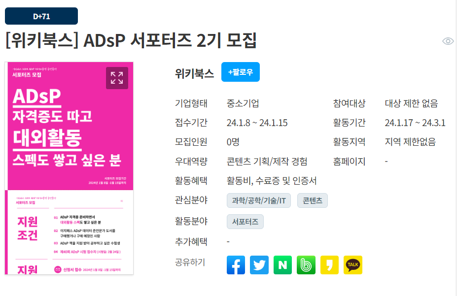 나는 처음에 위키북스의 ADsP 서포터즈를 통해 요 책을 알게 돼서