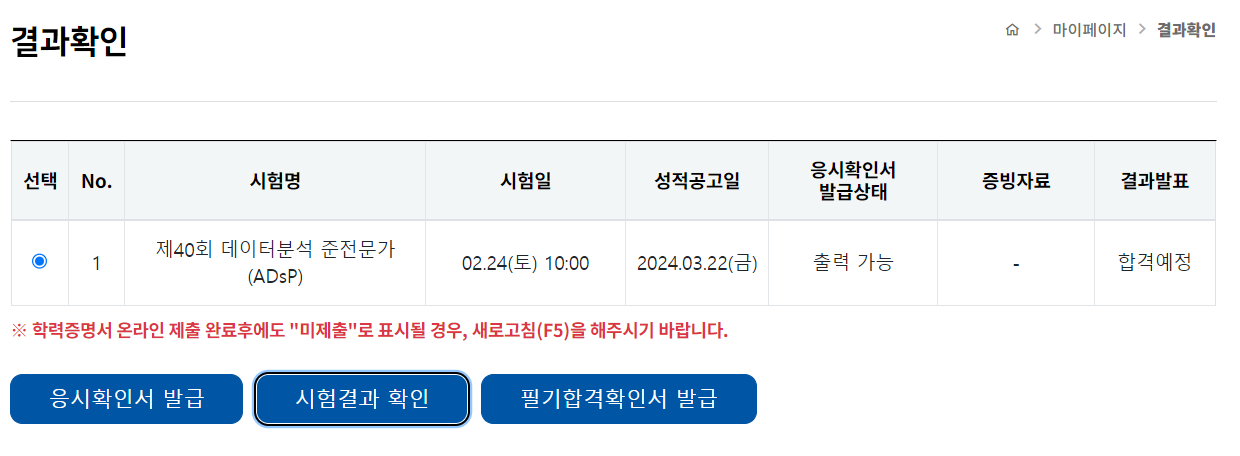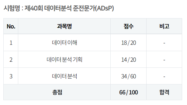 2월 24일(토) 제 40회 데이터분석 준전문가(ADsP) 시험을 응시했고,