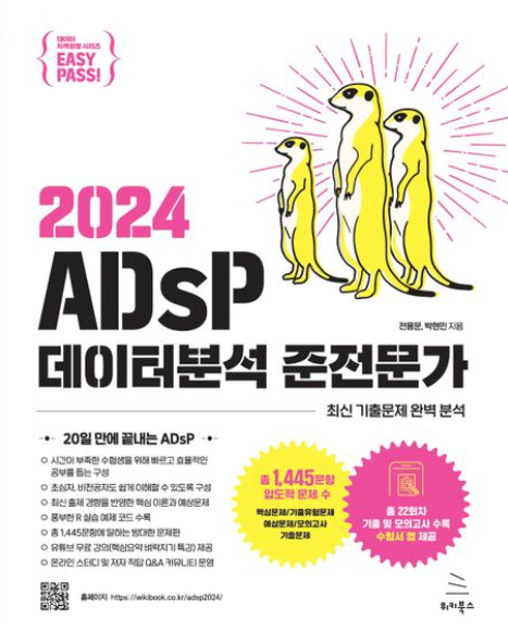 교재는 2024 이지패스 ADsP 데이터분석 준전문가 (aka.미어캣 책)으로 선택했다.