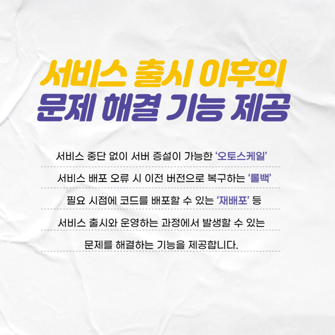 복잡한 설정 없이 개발 코드만 연동하면 서버 생성부터 배포까지 자동으로 진행되는 클라우드 서비스예요.