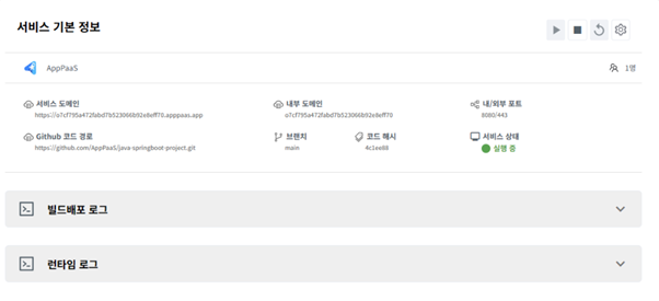 배포된 서비스는 서비스 상세 화면에서 외부 접속 URL로 확인할 수 있습니다.
