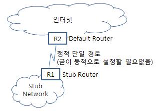 하나의 네트워크에서 외부의 네트워크로 나가고 들어오는 경로가 오직 하나 뿐인 경우