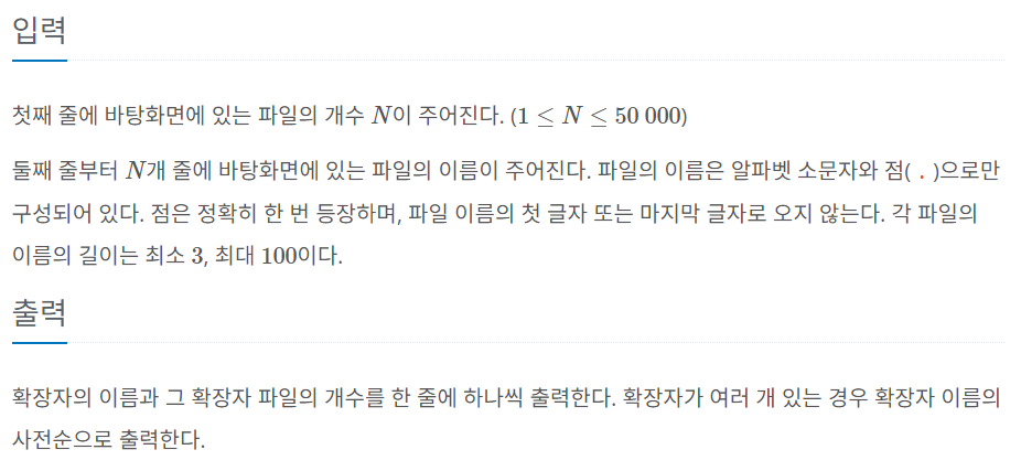 1. N만큼 입력 받으면서 개행 문자를 떼어내고 점(.) 뒤를 확장자 배열에 저장하자