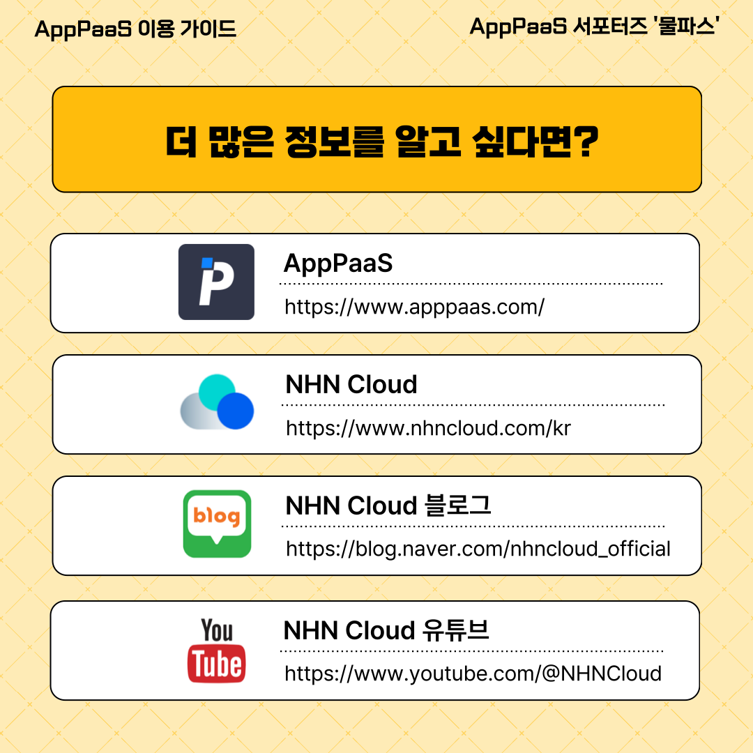 이번엔 AppPaas 이용 가이드를 알려드리기 위해 돌아왔습니다!