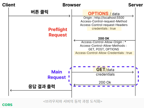 즉, 예비 요청의 역할은 본 요청을 보내기 전에 브라우저 스스로 안전한 요청인지 미리 확인하는 것이다.