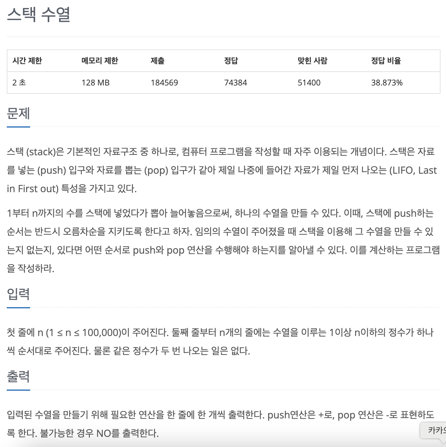 스택을 이용해 입력된 수열을 만들려면 어떤 연산을 해야 하는지