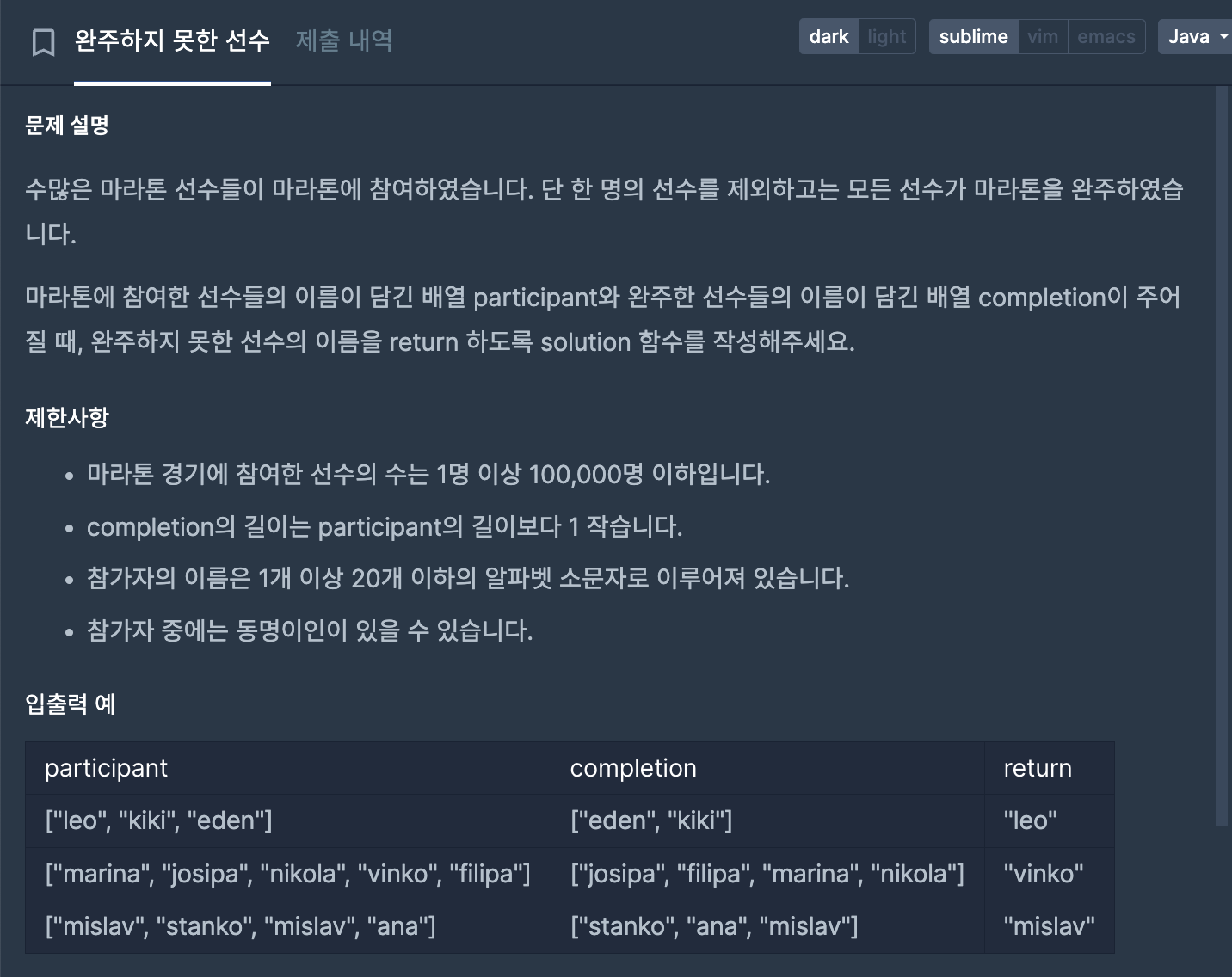https://school.programmers.co.kr/learn/courses/30/lessons/42576?language=java