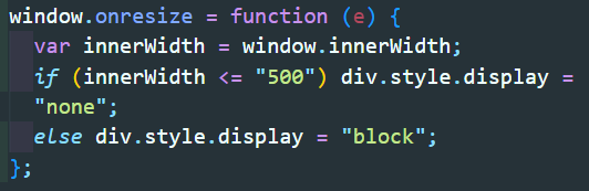 width가 500px보다 작아지면 div의 display를 none으로 바꿔줬다.
