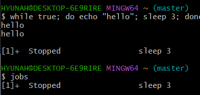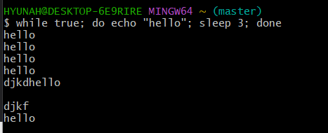 bash에 while true; do echo "hello"; sleep 3; done